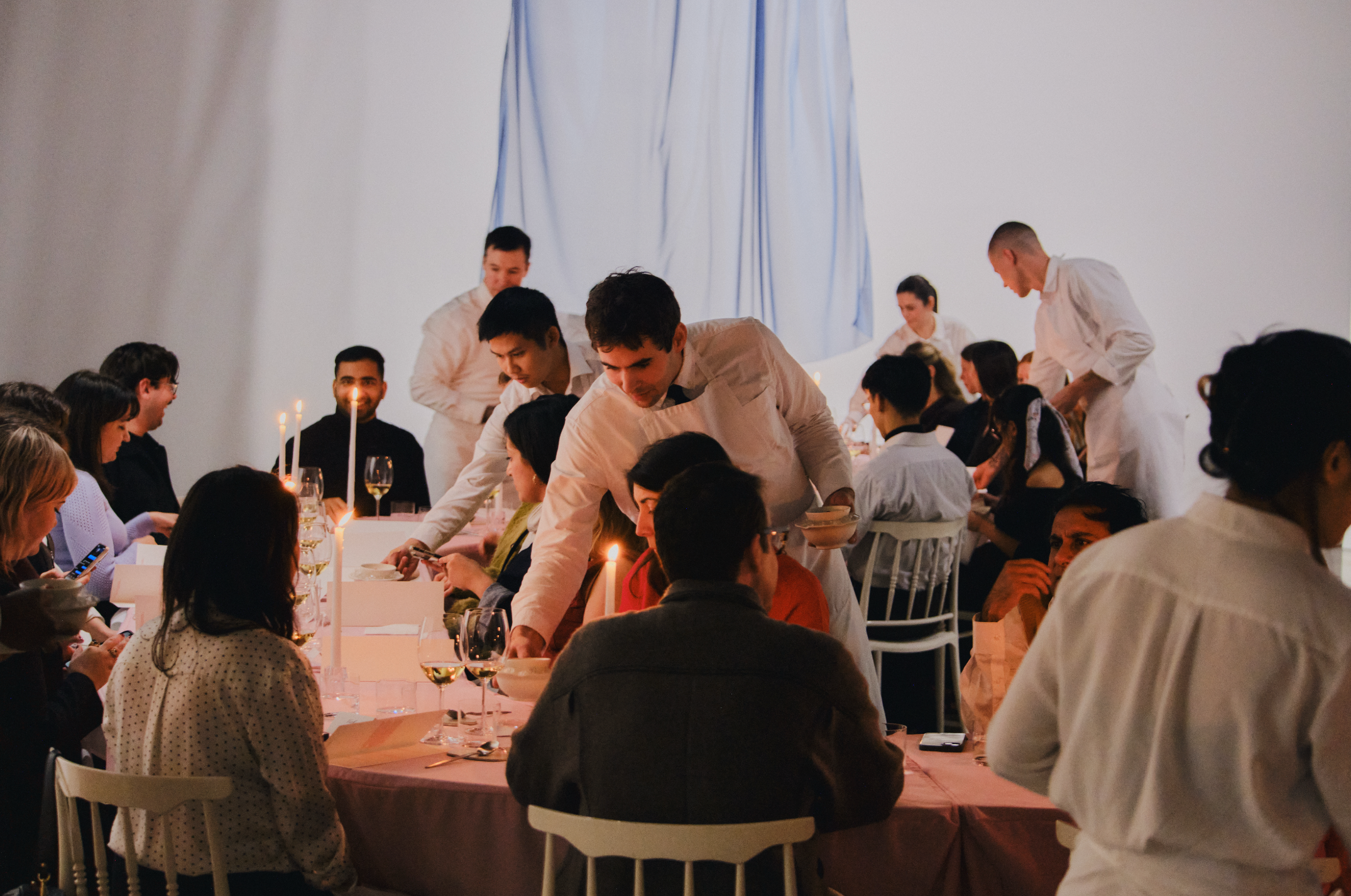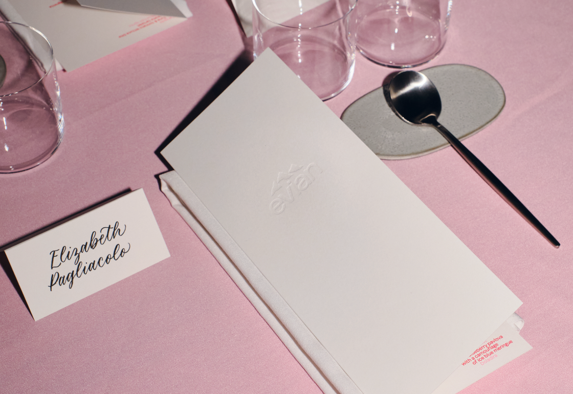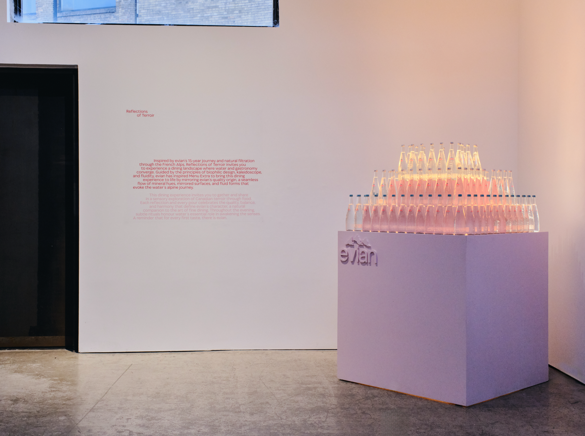 Pour evian, nous avons imaginé et réalisé une expérience culinaire sur mesure qui touche l’ensemble des points de contact avec les convives : de la conception et la construction des décors, au menu dégustation élaboré pour révéler l’unicité de l’eau de source naturelle, jusqu’au design et à la production des pièces imprimées, sans oublier un service qui trouve le juste équilibre entre précision et convivialité.