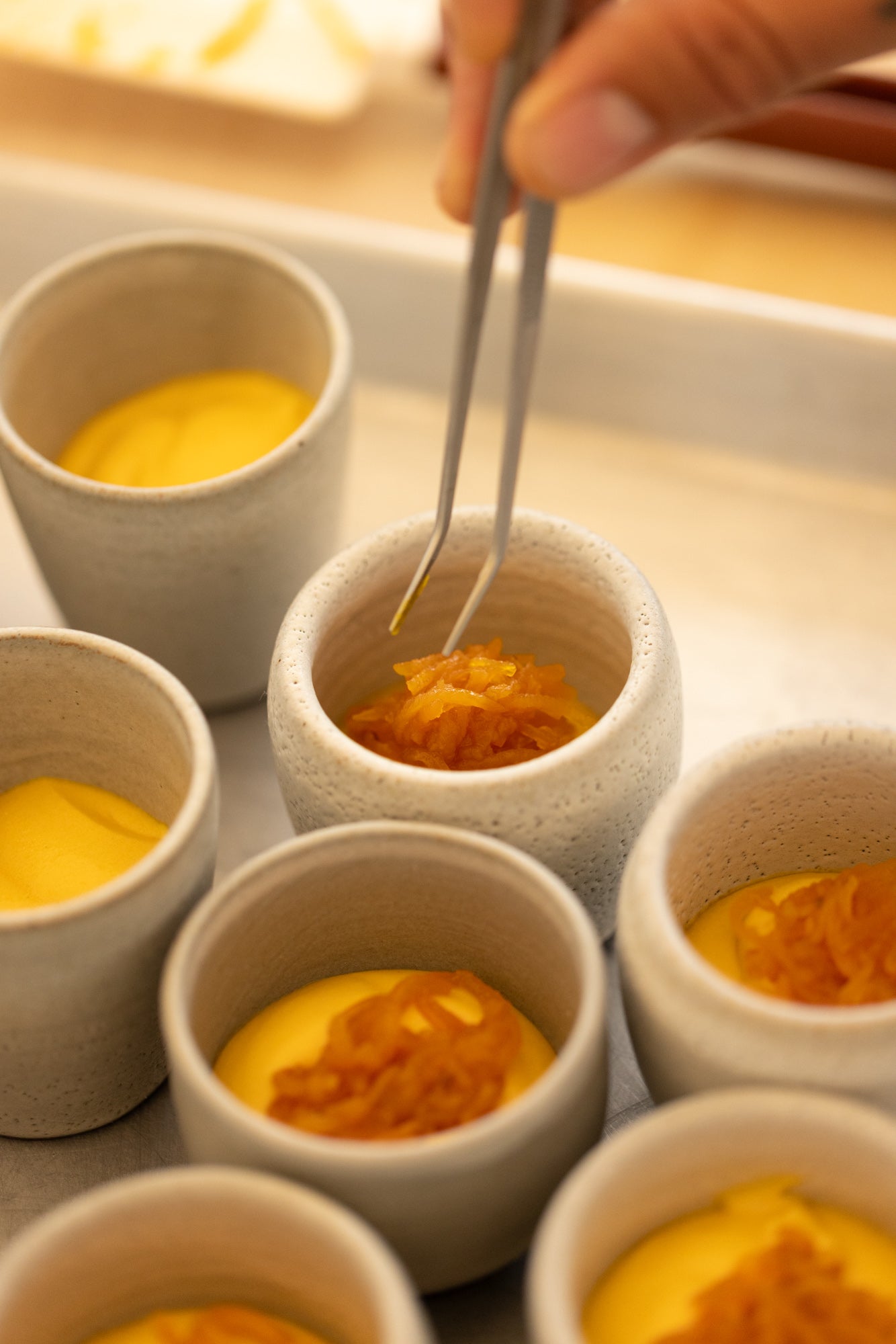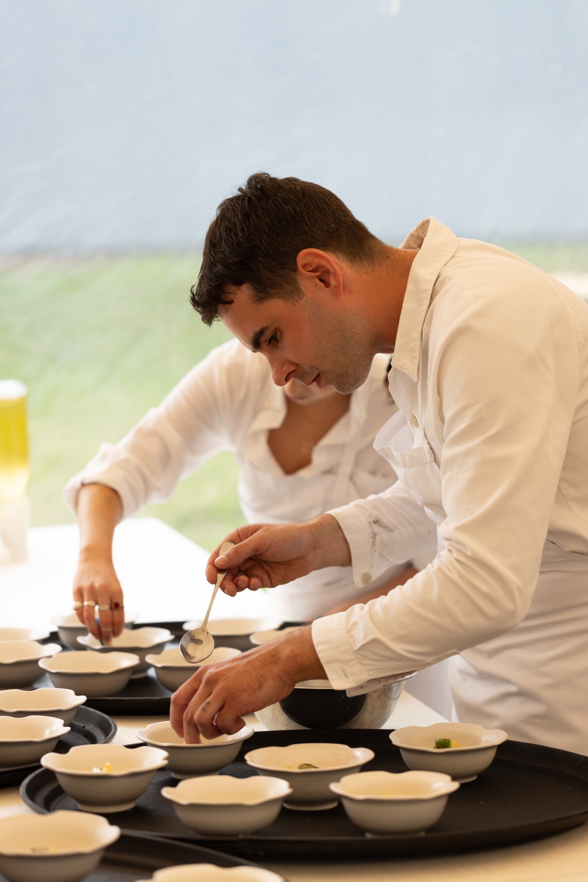 Menu Extra a proposé un menu décliné en douze services parfaitement marié aux vins du domaine situé dans le village de Saint-Louis, en Montérégie. En plus d’ouvrir leurs portes pour une toute première fois à une telle collaboration, les vigneron.nes Matthieu et Fannie ont pigés à même leur cave pour proposer quelques cuvées vieillies en exclusivité, au grand bonheur de notre sommelier.