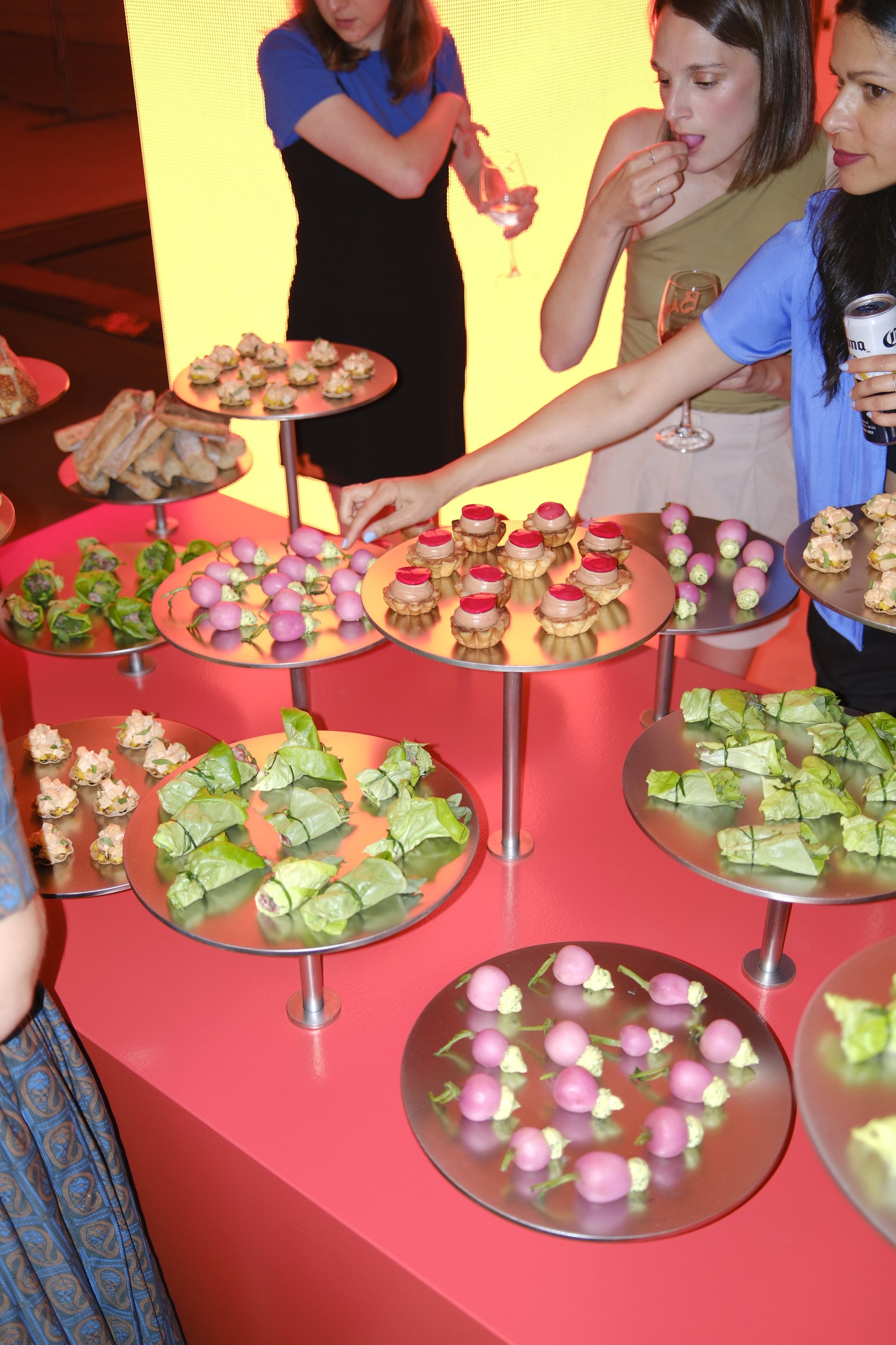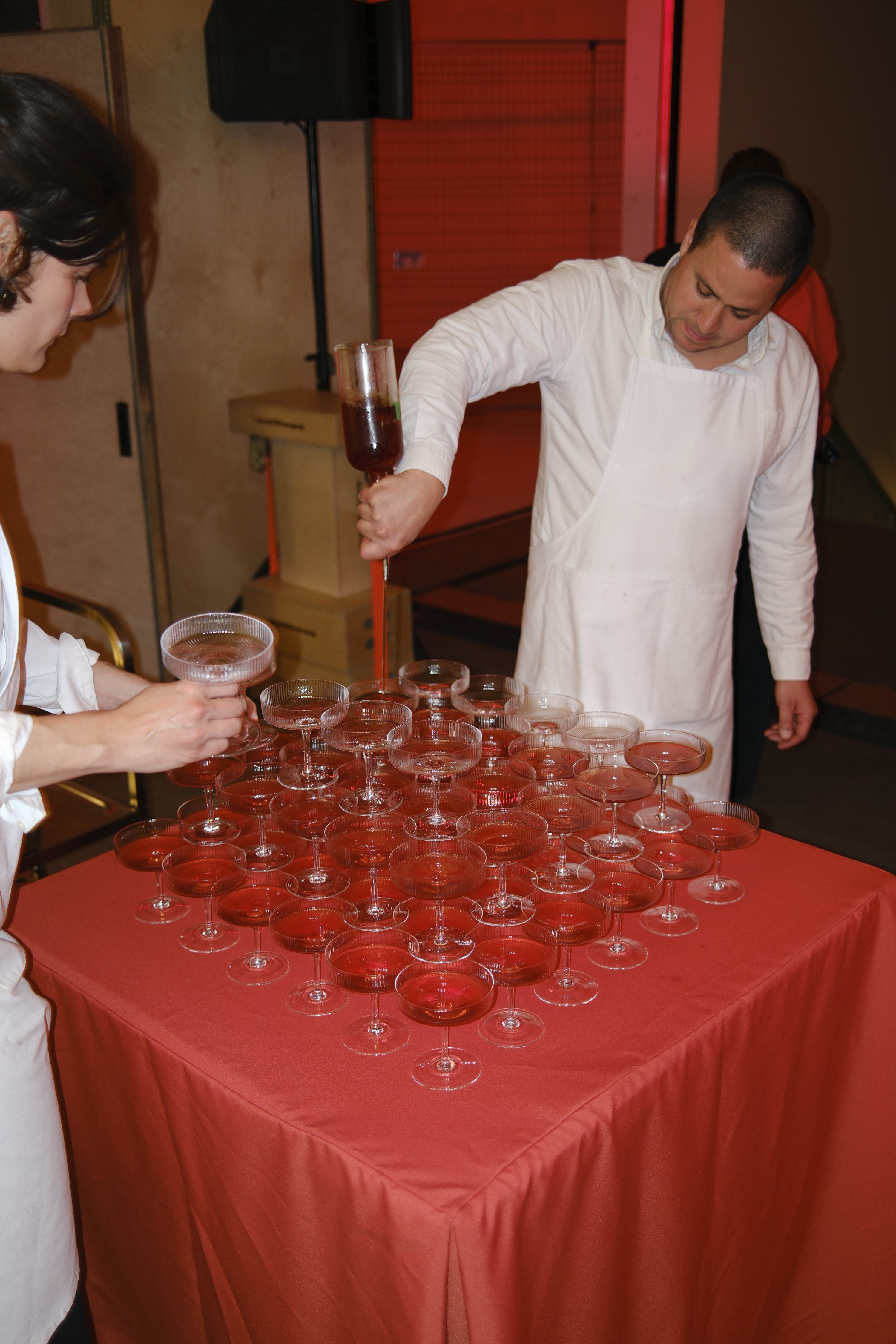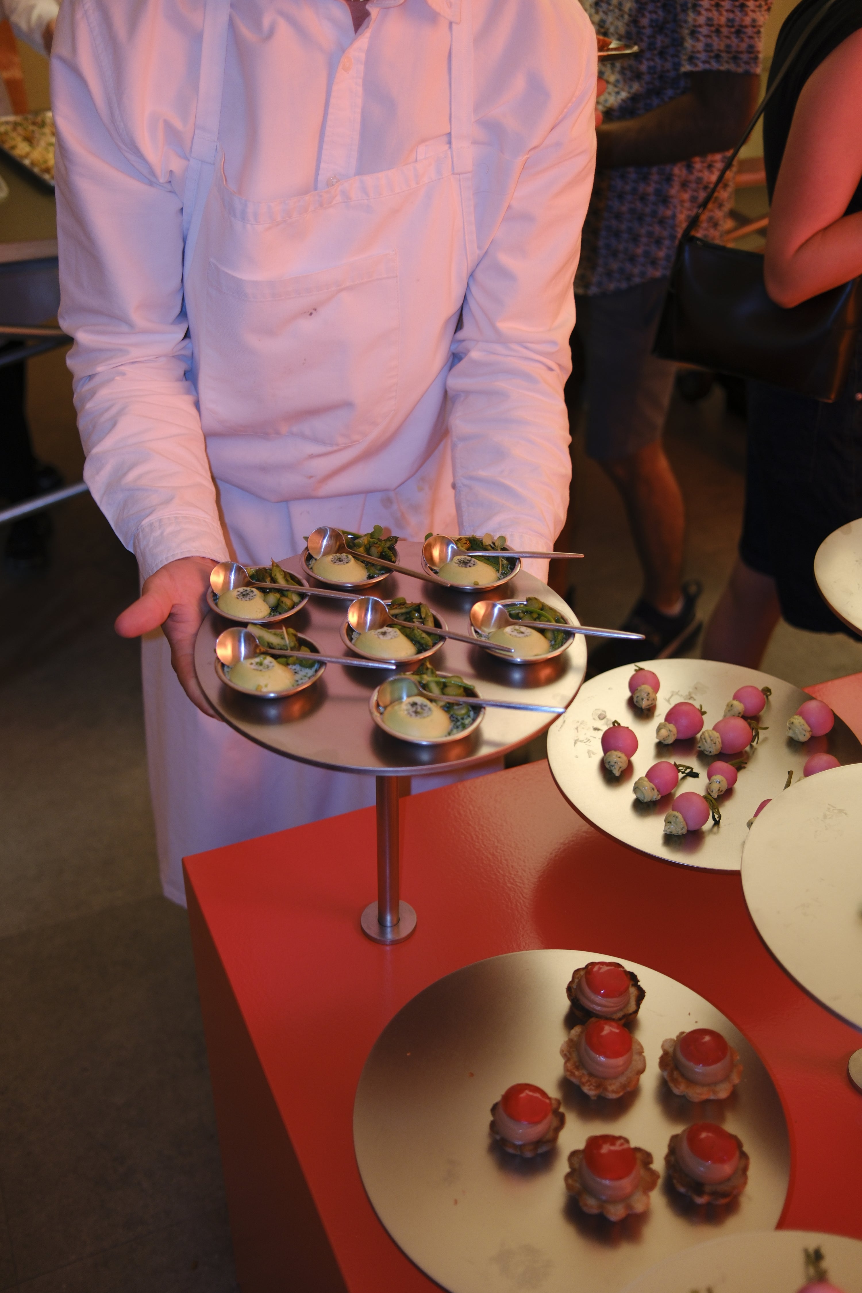 Pour les 15 ans de Tux, nous avons imaginé un parcours gastronomique festif à l’image de la compagnie créative. Un service de cocktails signatures accompagnait d'abord une installation de canapés conçue sur mesure pour l’occasion. S’en est suivi le montage en direct d’un gâteau d’anniversaire, une tour de sbagliato et un service de smashburgers à l’effigie de l'agence, accompagnés de frites servies sur plateaux d’argent pour trouver l’équilibre parfait entre élégance et excès.